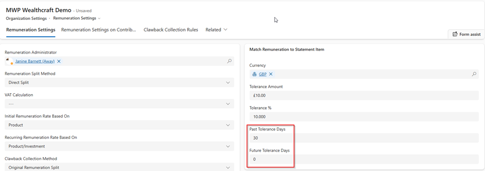 In Organization Settings → Remuneration Setting, the single tolerance day field has been updated to two separate fields: Past Tolerance Days and Future Tolerance Days. This provides greater flexibility in defining tolerance ranges for auto‑linking.