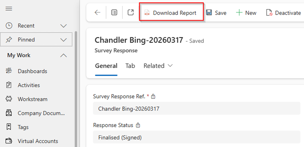 Once the Morningstar Risk Profiler questionnaire have been finalised, user will be able to see the Download Report button at the top ribbon.